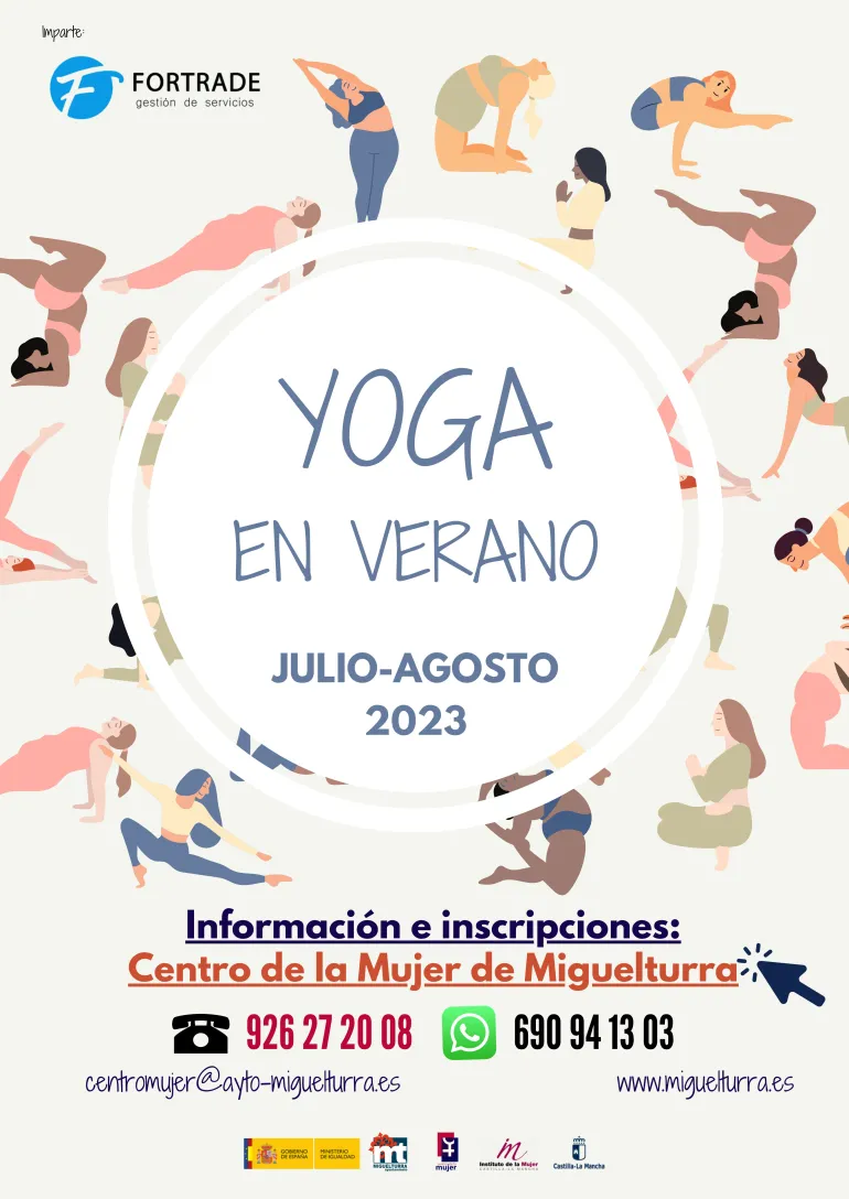 El área de Igualdad del consistorio informa sobre la apertura del plazo de inscripción para participar en los talleres de yoga durante los meses de verano 2023, organizados por el Centro de la Mujer, impartidos por Fortrade Gestión S.L., en la piscina municipal, del 3 de julio al 30 de agosto.