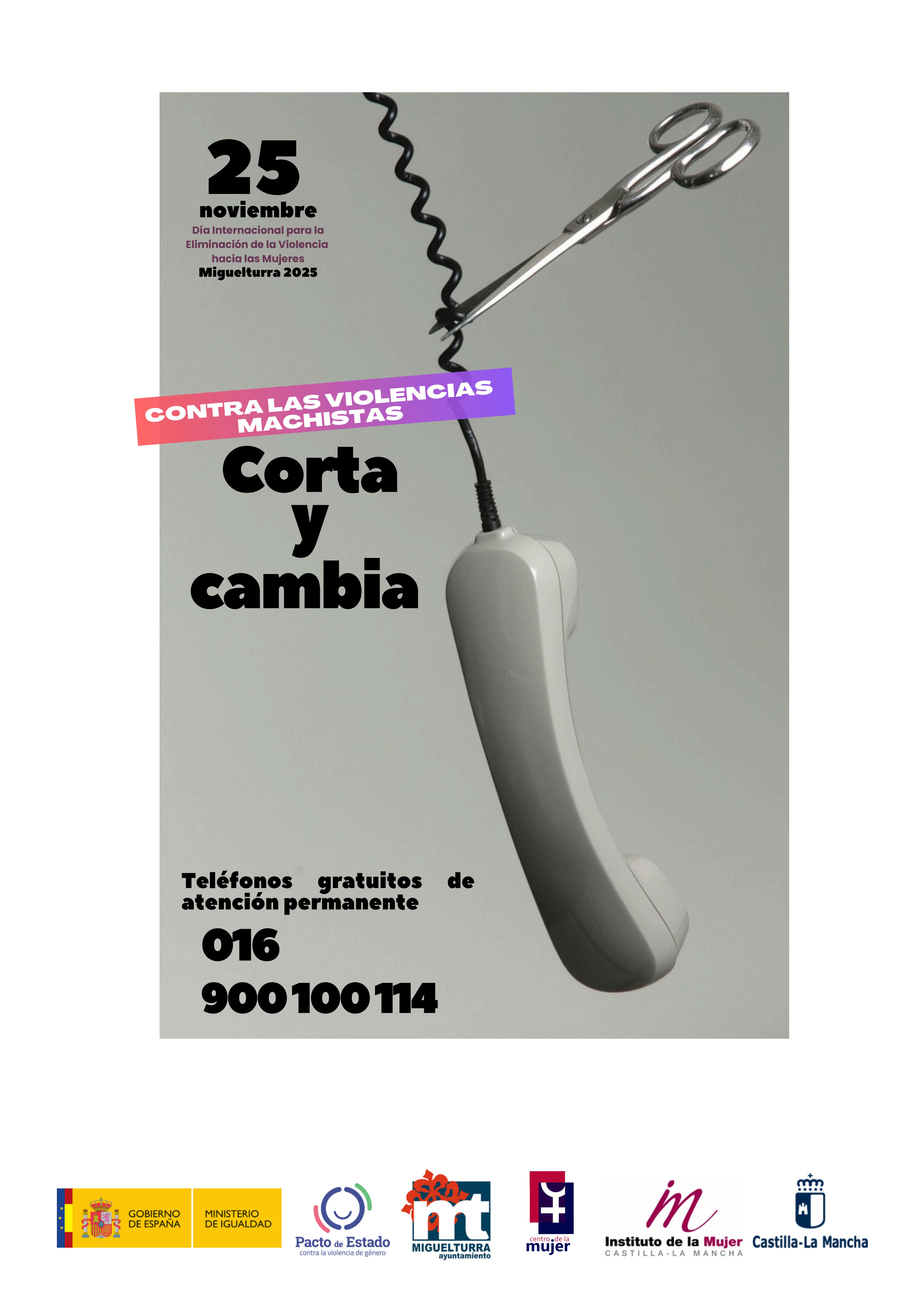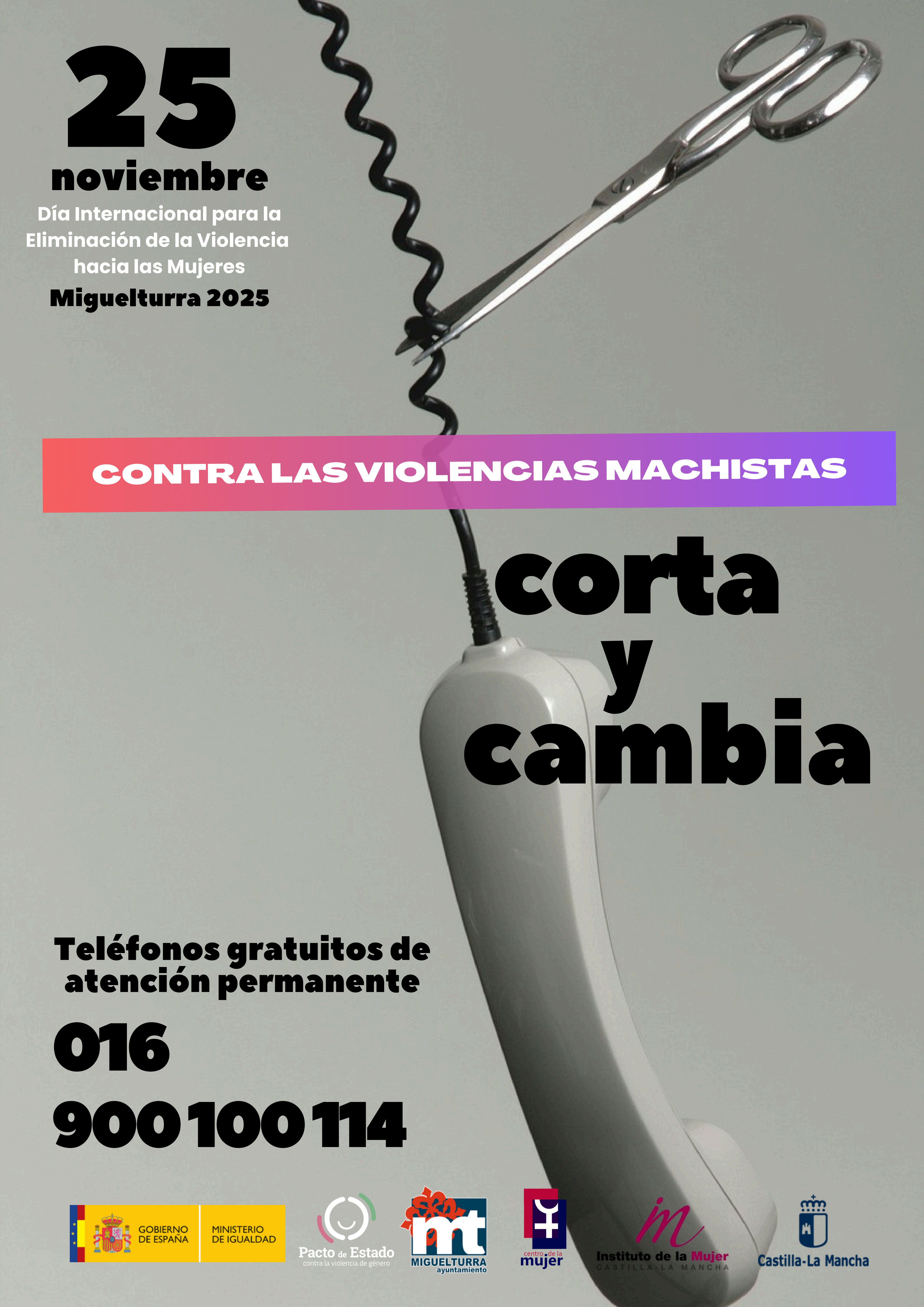 El Ayuntamiento de Miguelturra ha presentado la programación de actos conmemorativos del 25 de Noviembre, Día Internacional para la Eliminación de la Violencia hacia las Mujeres. Bajo el lema "Corta y Cambia", el consistorio ha diseñado un programa diverso y participativo que se extenderá durante más de una semana, con el objetivo de sensibilizar a toda la sociedad y reafirmar su compromiso con la igualdad.