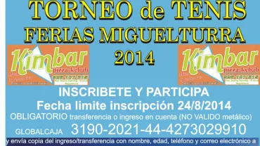 Asociaciones Torneo de Tenis Ferias de Miguelturra 2014. Plazo de inscripción abierto hasta el 24 de agosto.