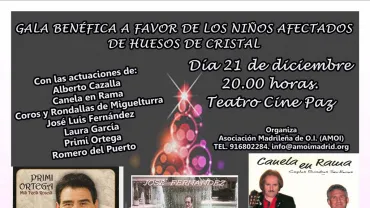 Asociaciones Gala benéfica a favor de niños y niñas afectados por la enfermedad de los huesos de cristal. Este viernes día 21 de diciembre partir de las ocho de la tarde en el Teatro Cine Paz.