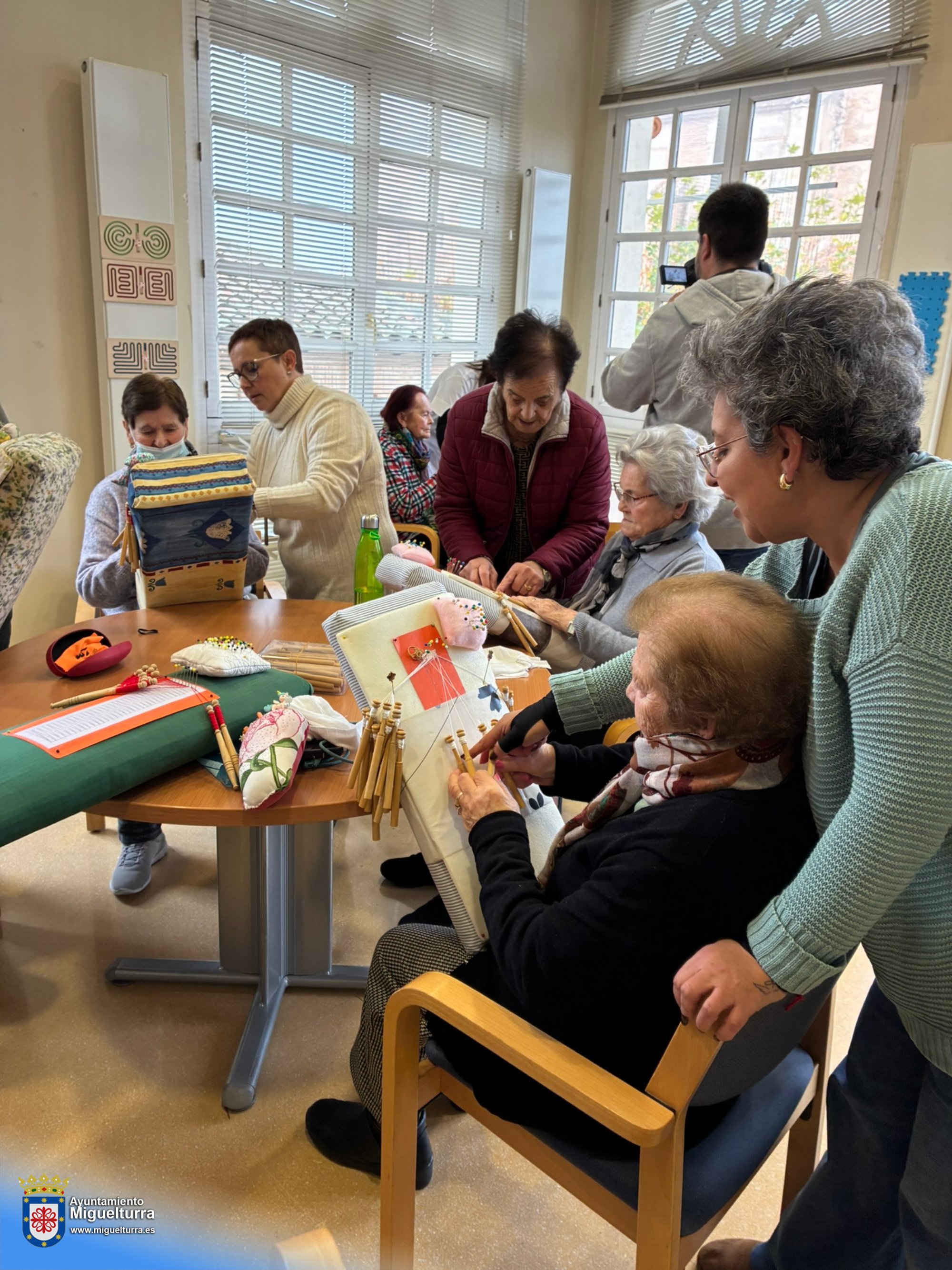 La Concejalía de Bienestar Social del Ayuntamiento de Miguelturra, a través del Área de Mayores, ha acogido una innovadora iniciativa de la recién creada Asociación Cultural Tejemaneje, que ha ofrecido un taller de encaje de bolillos para los usuarios y usuarias del Servicio de Estancias Diurnas del Centro de Día de la localidad. La actividad se desarrolló en la mediateca del centro, con el objetivo de ofrecer un espacio de entretenimiento, lúdico y de tradición a las personas mayores.
