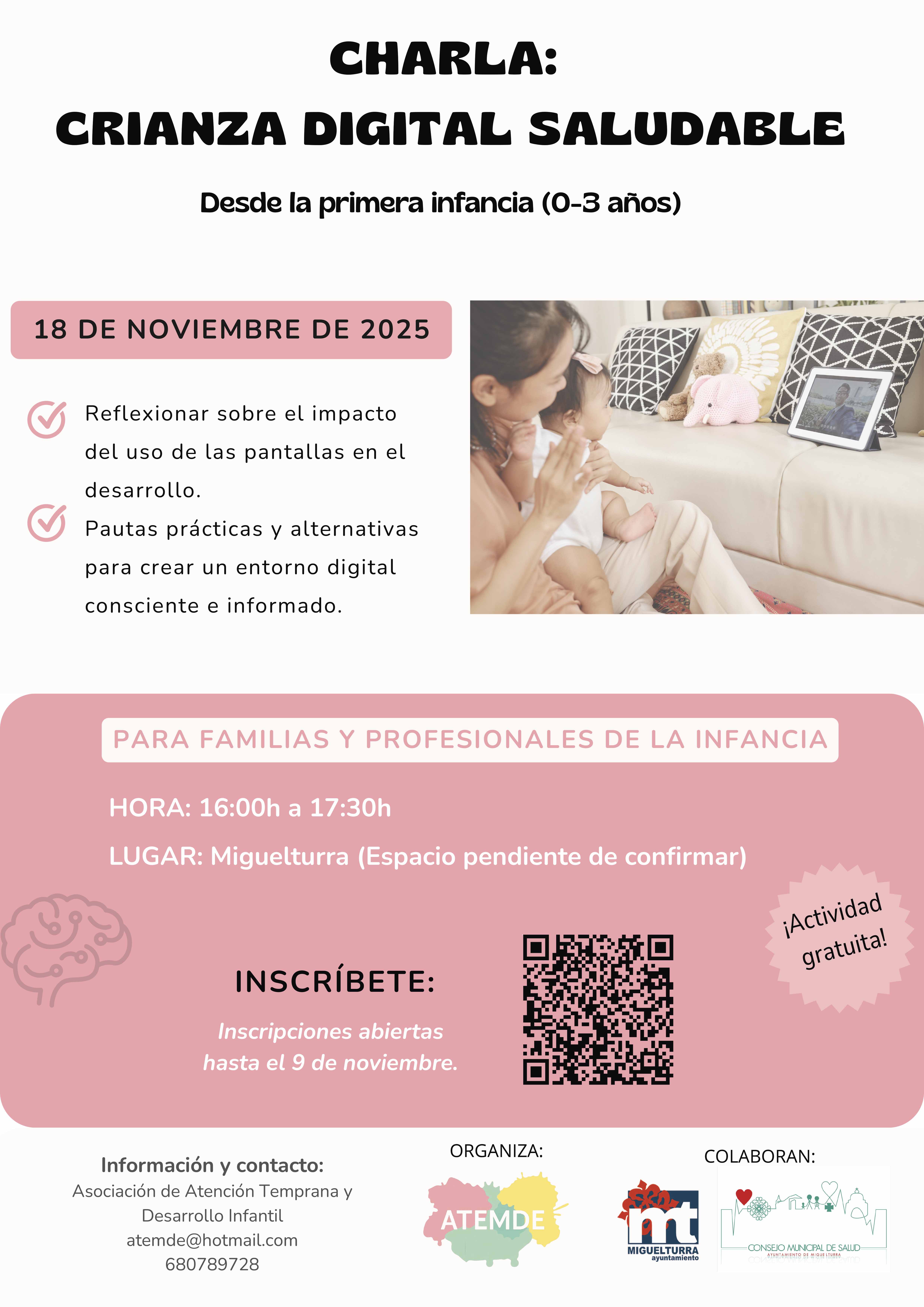 El Ayuntamiento de Miguelturra y ATEMDE se unen para promover una "Crianza Digital Saludable" en la primera infancia