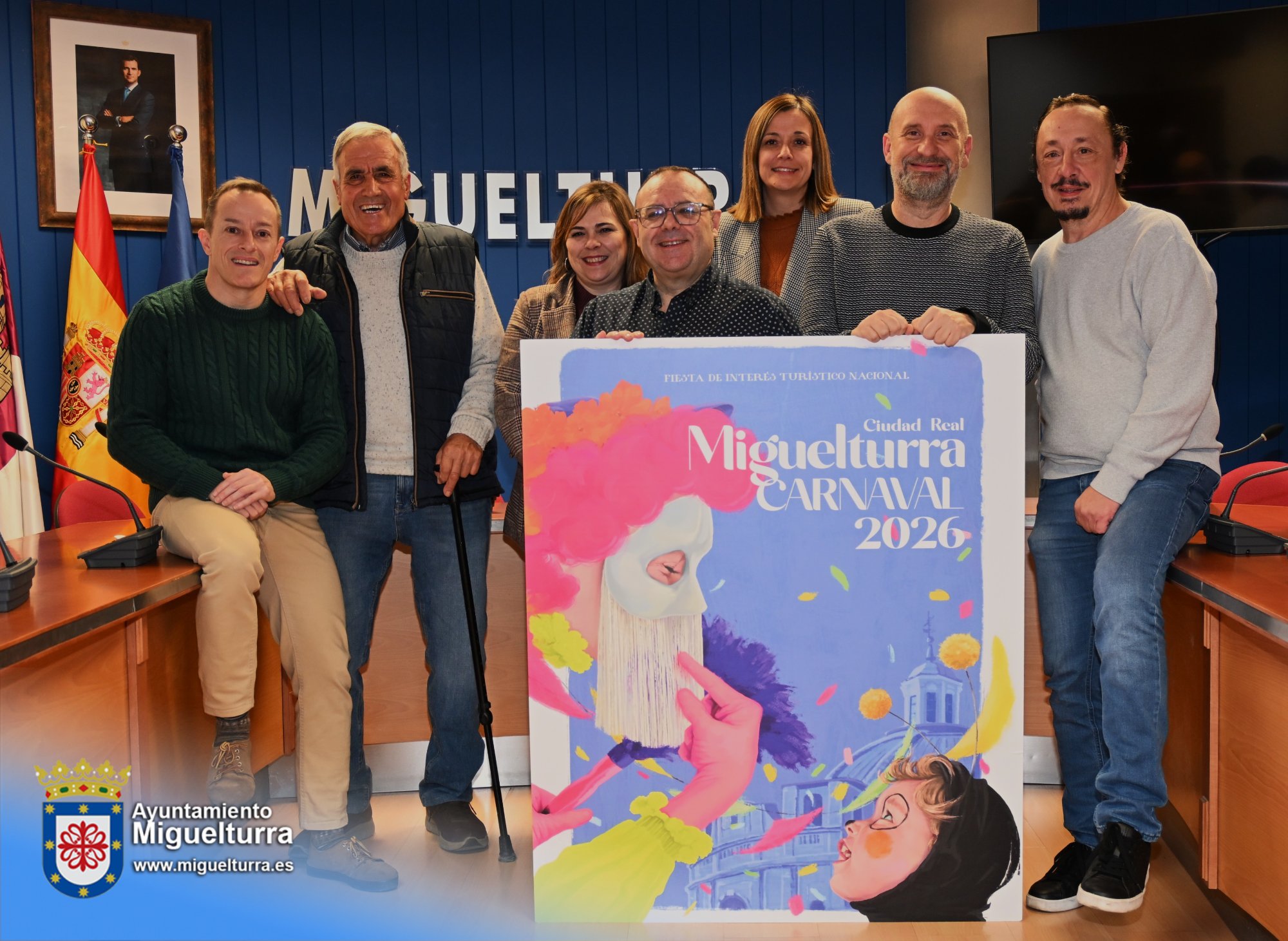 El Ayuntamiento de Miguelturra ha acogido la presentación oficial de la programación del Carnaval 2026, una de las citas más esperadas del calendario churriego. En una rueda de prensa multitudinaria, la concejal de Festejos, Carmen María Mohíno, acompañada por el concejal de Familia, Julián Margotón, el presidente de la Asociación de Peñas del Carnaval, Diego Rodríguez, el Rey del Carnaval, Serafín Delgado, y las Máscaras Mayores salientes (2025), Esther Martínez y Berna Martínez, y las entrantes (2026), Juan Carlos Pérez y Miguel Ángel Ruiz, ha detallado punto por punto la oferta lúdica y cultural para los próximos días.