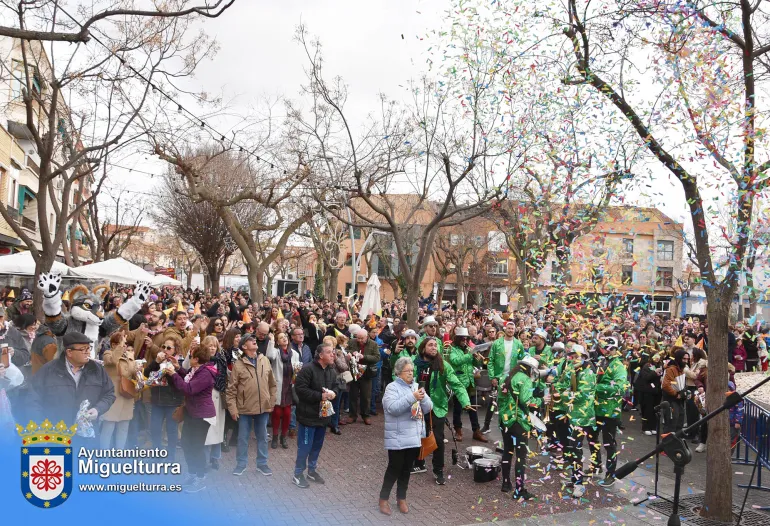 Así, a las 13:00 horas, el espectáculo de las "Campanadas Churriegas" llevado a cabo por la empresa Real Audiovisuales, y conducido por la periodista Tere Rodado congregó a cientos de miguelturreños, entre los que se encontraba el alcalde de la localidad, Luis Ramón Mohíno, para despedir el año y dar la bienvenida al 2024 en comunidad.