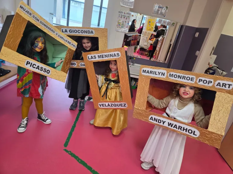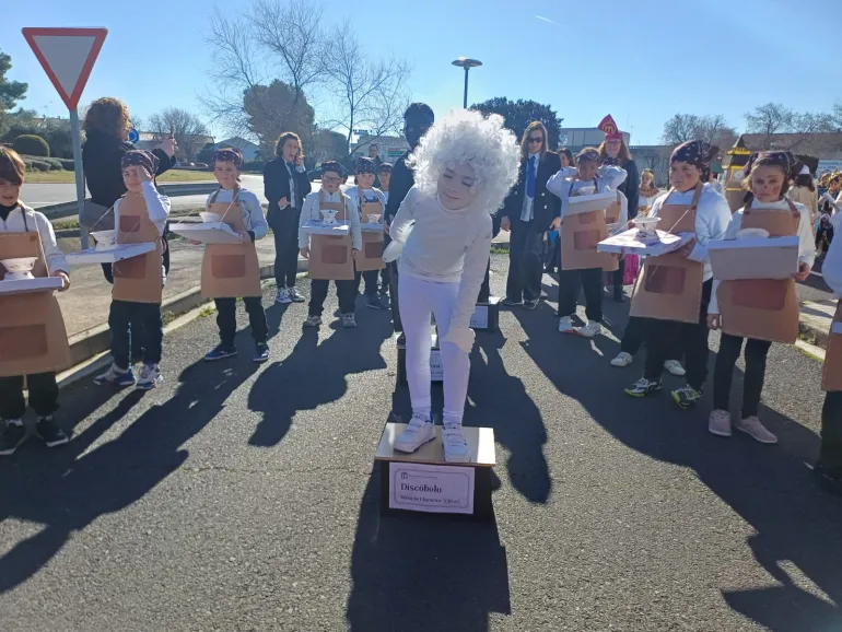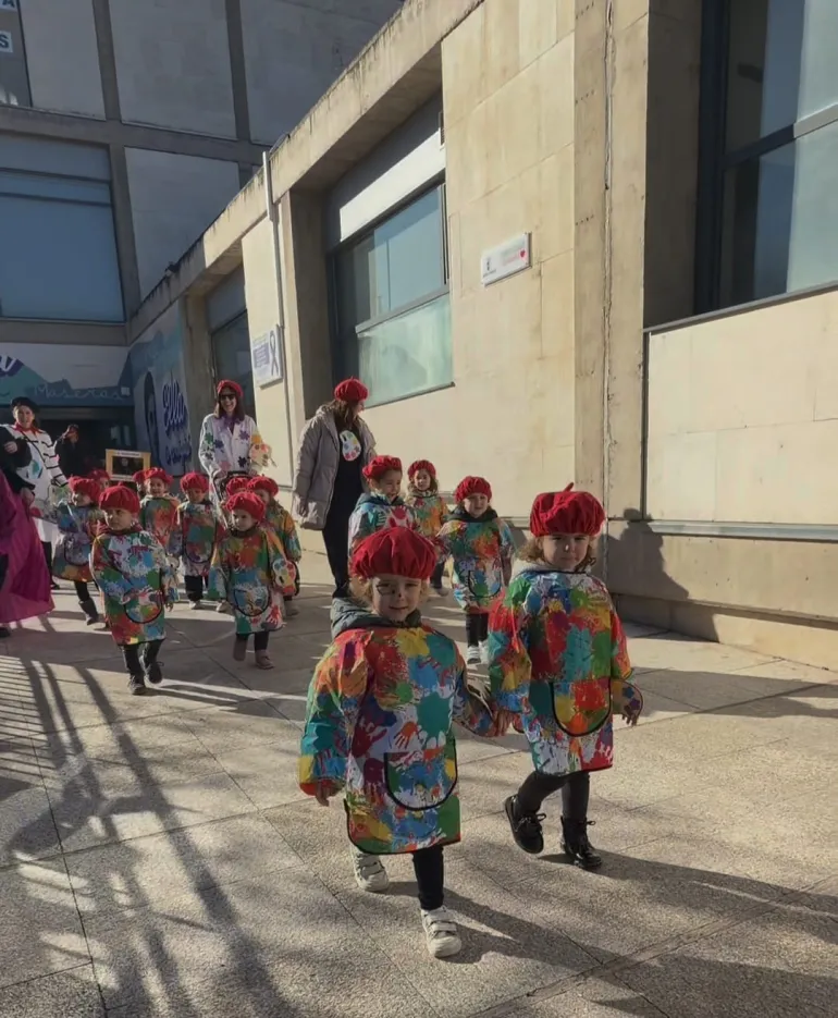 Las calles cercanas al centro se han llenado de creatividad, imaginación y alegría gracias a los elaborados disfraces preparados con la colaboración del profesorado y las familias. Óleos gigantes, paletas de colores, cuadros vivientes inspirados en grandes obras pictóricas, esculturas humanas y pequeñas construcciones arquitectónicas han protagonizado un recorrido cargado de expresión artística.