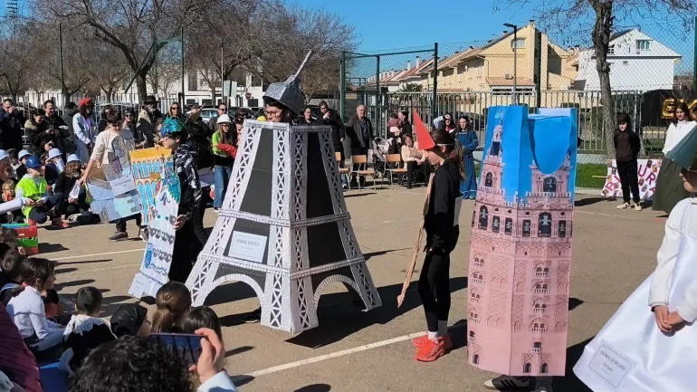 La Dirección del CEIP María Elena Maseras de Miguelturra informa que el alumnado ha celebrado durante la mañana del lunes 23 de febrero de 2026 un original y colorido desfile de Carnaval bajo la temática “Explosión de Arte”, dedicando esta edición a la pintura, la escultura y la arquitectura.