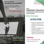 De esta charla nacerá el grupo de trabajo 'Sin miedo a ser yo', una experiencia de autoconocimiento de cuatro sesiones que se celebrará los viernes (17 y 24 de abril, y 8 y 15 de mayo) de 11:30 a 13:30 horas. Rodríguez ha señalado que "si el grupo se estabiliza, estamos abiertas a poderlo prorrogar durante el mes de junio". Completa este área el taller de 'Feminismo y Relajación' el 13 de mayo en la Antesala del CERE, impartido por Mercedes Ruiz Soler, enfocado al autocuidado y la gestión del estrés.