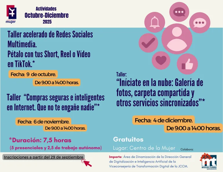 Contacto: 926 27 20 08 · 690 94 13 03 · centromujer@ayto-miguelturra.es · www.miguelturra.es