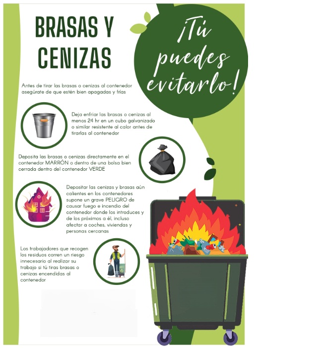 Desde las concejalías de Seguridad Ciudadana y Medio Ambiente informan sobre el riesgo de tirar cenizas y brasas en los contenedores