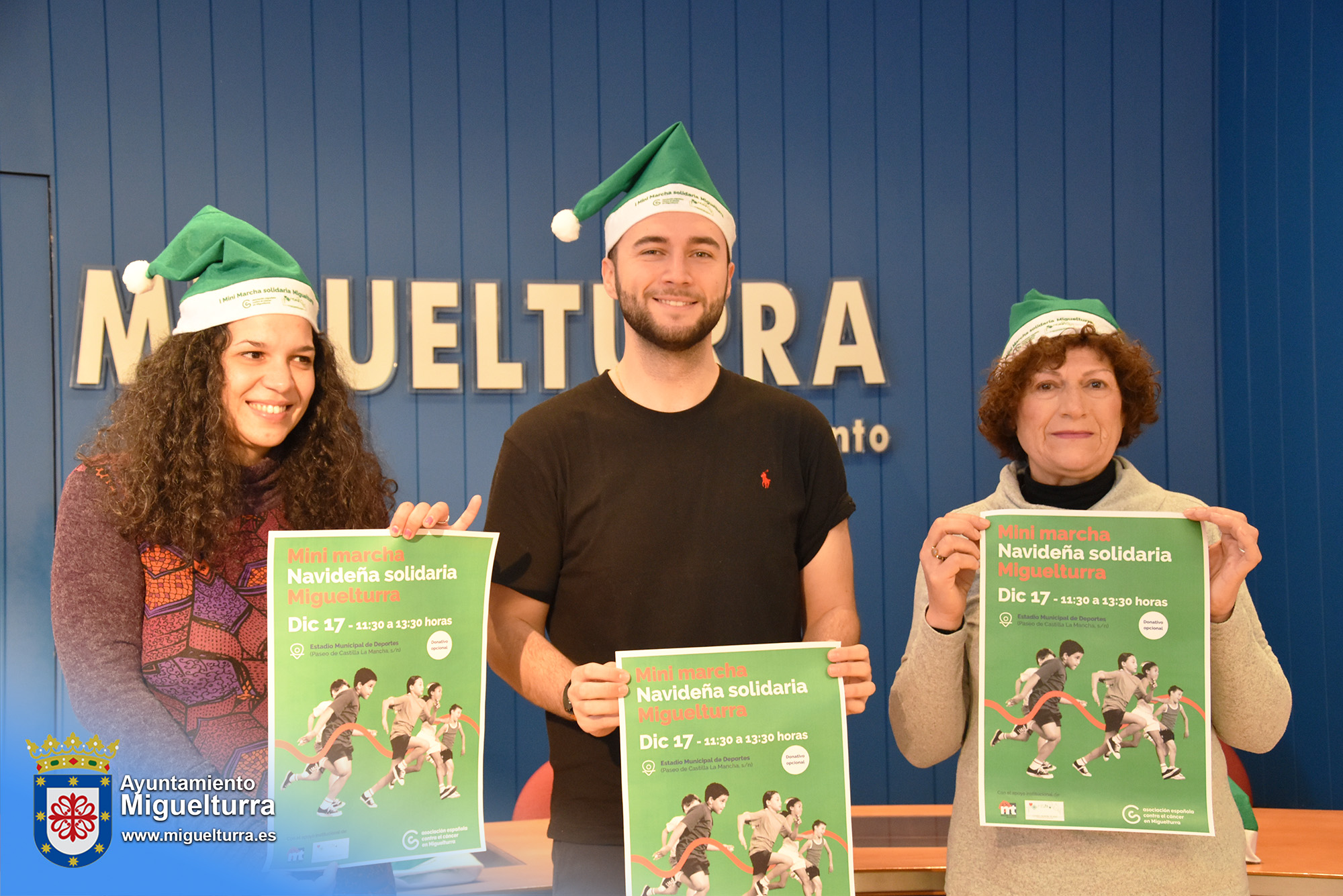 El concejal de Salud del Ayuntamiento de Miguelturra, Luis Vinuesa, acompañado por la presidenta de la Asociación Española Contra el Cáncer en la localidad, Carmen Asensio, y Carolina Castillejos, técnico en prevención de dicha asociación en la provincia de Ciudad Real, ha presentado la Mini Marcha Navideña Solidaria, que tendrá lugar el próximo martes, día 17 de diciembre, de 11:30 a 13:30 horas.