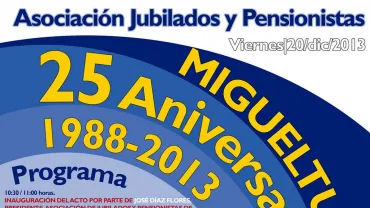 Igualdad Género Actos celebración 25 aniversario Asociación de Jubilados y Pensionistas de Miguelturra. Vie, 20/12/2013 - 01:00 - Sáb, 21/12/2013 - 01:00