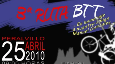 Deportes El domingo 25 de abril se celebrará la tercera Ruta BTT Peralvillo. Vie, 16/04/2010 - 02:00 - Lun, 26/04/2010 - 02:00