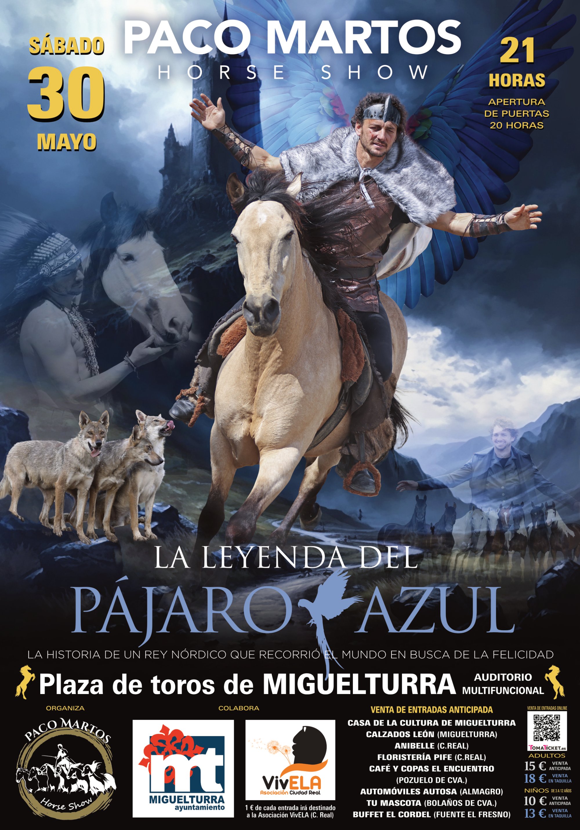 El Ayuntamiento de Miguelturra se complace en anunciar una de las citas culturales y de ocio más esperadas de la temporada. El sábado 30 de mayo de 2026, a las 21:00 horas, el Auditorio Multifuncional de nuestra localidad abrirá sus puertas para acoger a Paco Martos y su equipo, en una apuesta decidida por ofrecer eventos de alta calidad para toda la ciudadanía, con un despliegue de arte, sensibilidad y destreza animal que promete una velada inolvidable para vecinos, vecinas y visitantes de toda la provincia, evento de carácter benéfico organizado por Paco Martos “Horse Show” en colaboración con el área de Cultura del Ayuntamiento de Miguelturra y Asociación VivELA Ciudad Real.
