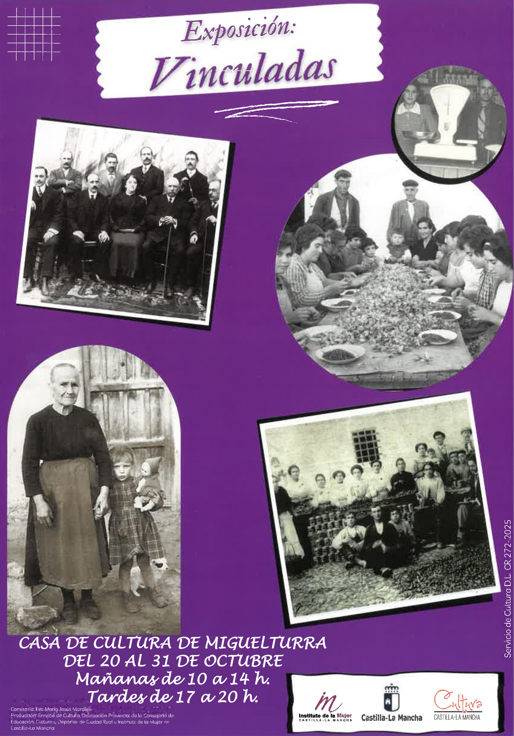 Organizada por el Instituto de Mujer de Castilla-La Mancha, la Junta de Comunidades de Castilla-La Mancha y la entidad “Cultura de Castilla-La Mancha”, bajo la comisaría de Eva María Jesús Morales, en colaboración con el área de Igualdad y Cultura del Ayuntamiento de Miguelturra “Vinculadas” se presenta como una oportunidad para visibilizar el papel de las mujeres en la construcción de vínculos sociales y preservar el legado afectivo de nuestras raíces.