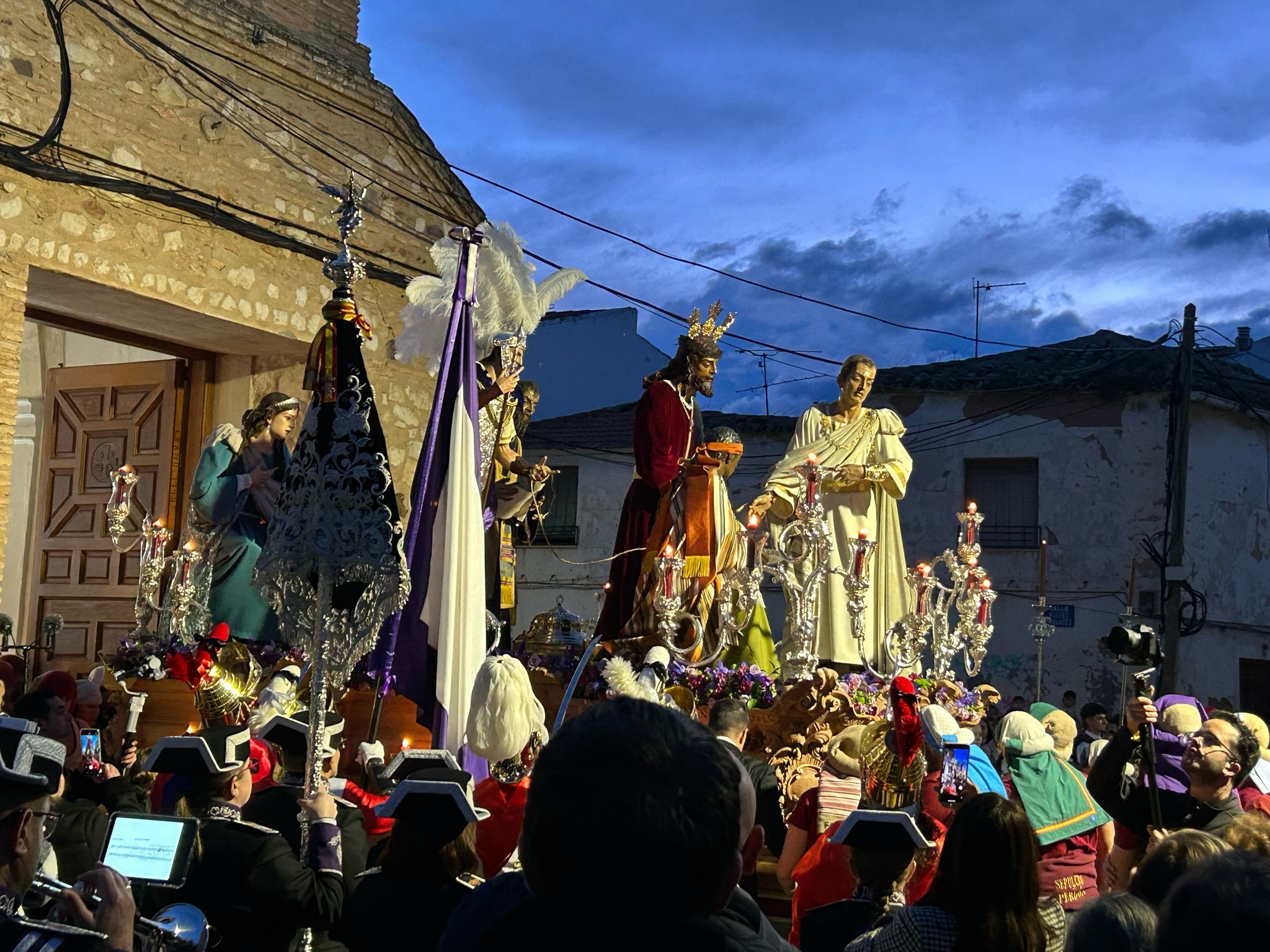 Numeroso público acompañó en su recorrido de vuelta a la hermandad, Armaos, penitentes, costaleros y capataces, así como a la Agrupación Musical Santísimo Cristo de la Piedad, que fue la banda encargada de poner la nota musical a esta corta estación de penitencia. A las 21:45 entraba en la ermita el paso de misterio de Nuestro Padre Jesús del Perdón, que además, este año estrenaba la figura de Claudia Prócula, adquirida el año pasado pero que por las inclemencias meteorológicas tampoco pudo procesionar.