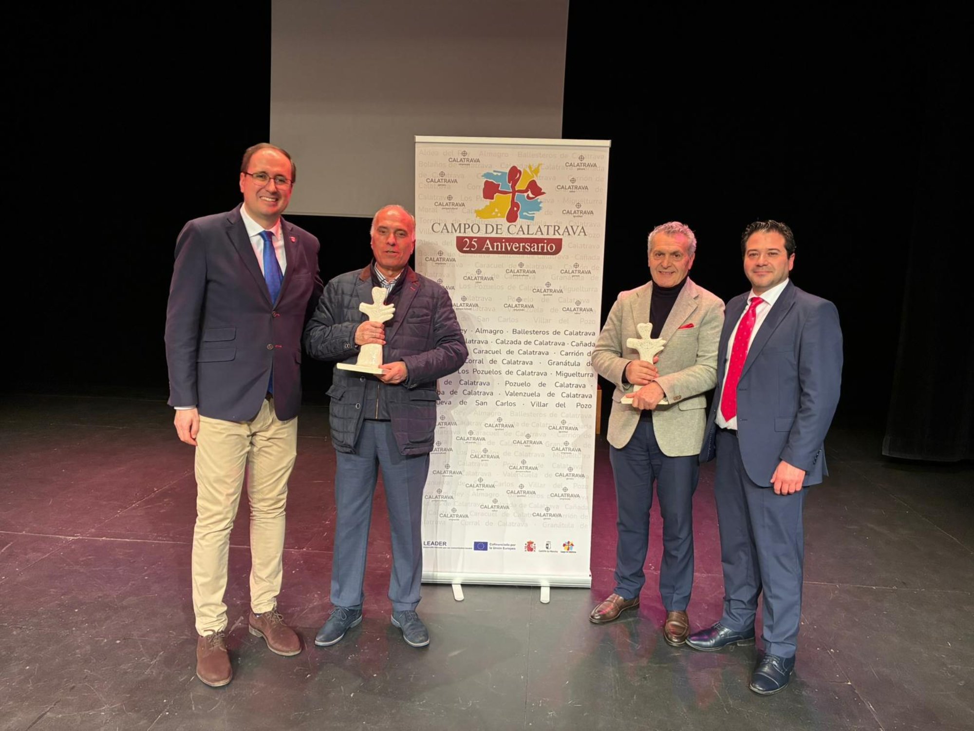 Una amplia representación de la corporación municipal de Miguelturra, encabezada por su alcalde, Luis Ramón Mohíno, participó ayer en la gala conmemorativa del 25 aniversario de la Asociación para el Desarrollo del Campo de Calatrava. El evento, celebrado en el emblemático Teatro Municipal de Almagro, sirvió para poner en valor un cuarto de siglo de trabajo conjunto en favor de la fijación de población y la diversificación económica de los 18 municipios que integran la comarca.