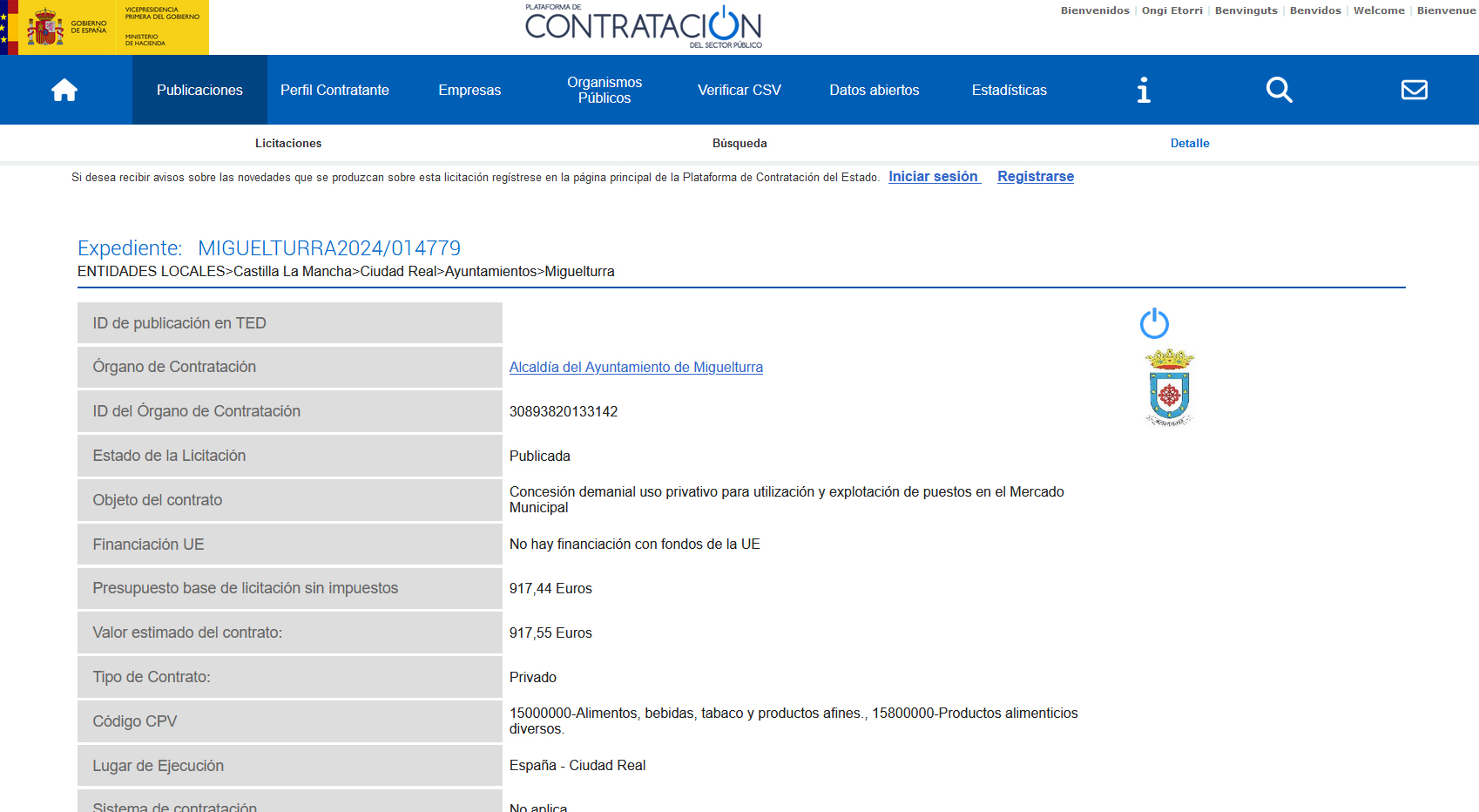 Acceso a la zona de licitaciones del Ayuntamiento de Miguelturra/Alcaldía