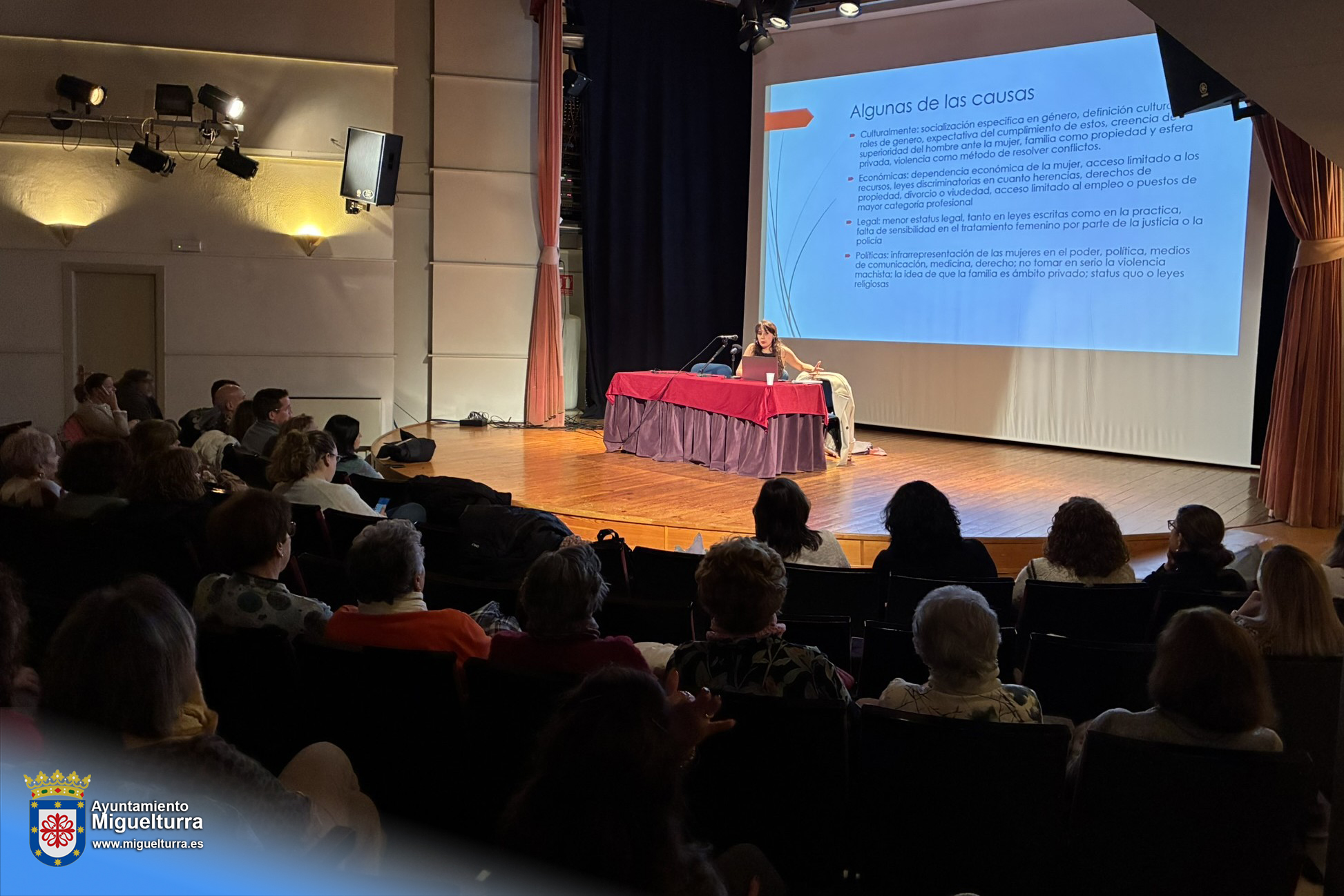 Tras la concentración, la actividad se trasladó a la Casa de Cultura y posteriormente al Teatro Cine Paz, completando la jornada con un enfoque educativo y cultural. A las 19:00 horas, la psicóloga especializada Marta Abad Rubio ofreció una ponencia centrada en la violencia vicaria y los diferentes tipos de violencia de género, profundizando en la atención psicológica a menores, un tema central en las reivindicaciones de este año.