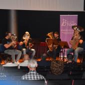 El repertorio de la noche incluyó la obra 'Don Quichottisen' interpretada por el quinteto, la pieza conjunta 'Excursions' de Gregory Fritze, y un final espectacular a cargo de la Banda Sinfónica con bandas sonoras de 'El Gran Showman' y 'El fantasma de la ópera'. Esta última contó con la colaboración especial de la soprano Mónika López.