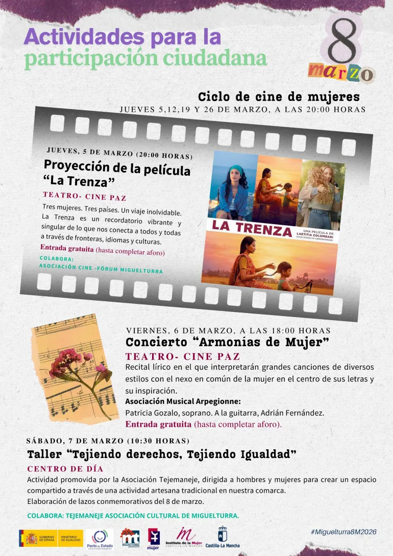 Desde el Ayuntamiento se invita a toda la ciudadanía de Miguelturra a sumarse a estos actos y a lucir los pines conmemorativos que se repartirán en las actividades para demostrar que Miguelturra avanza con paso firme hacia la igualdad real y efectiva.