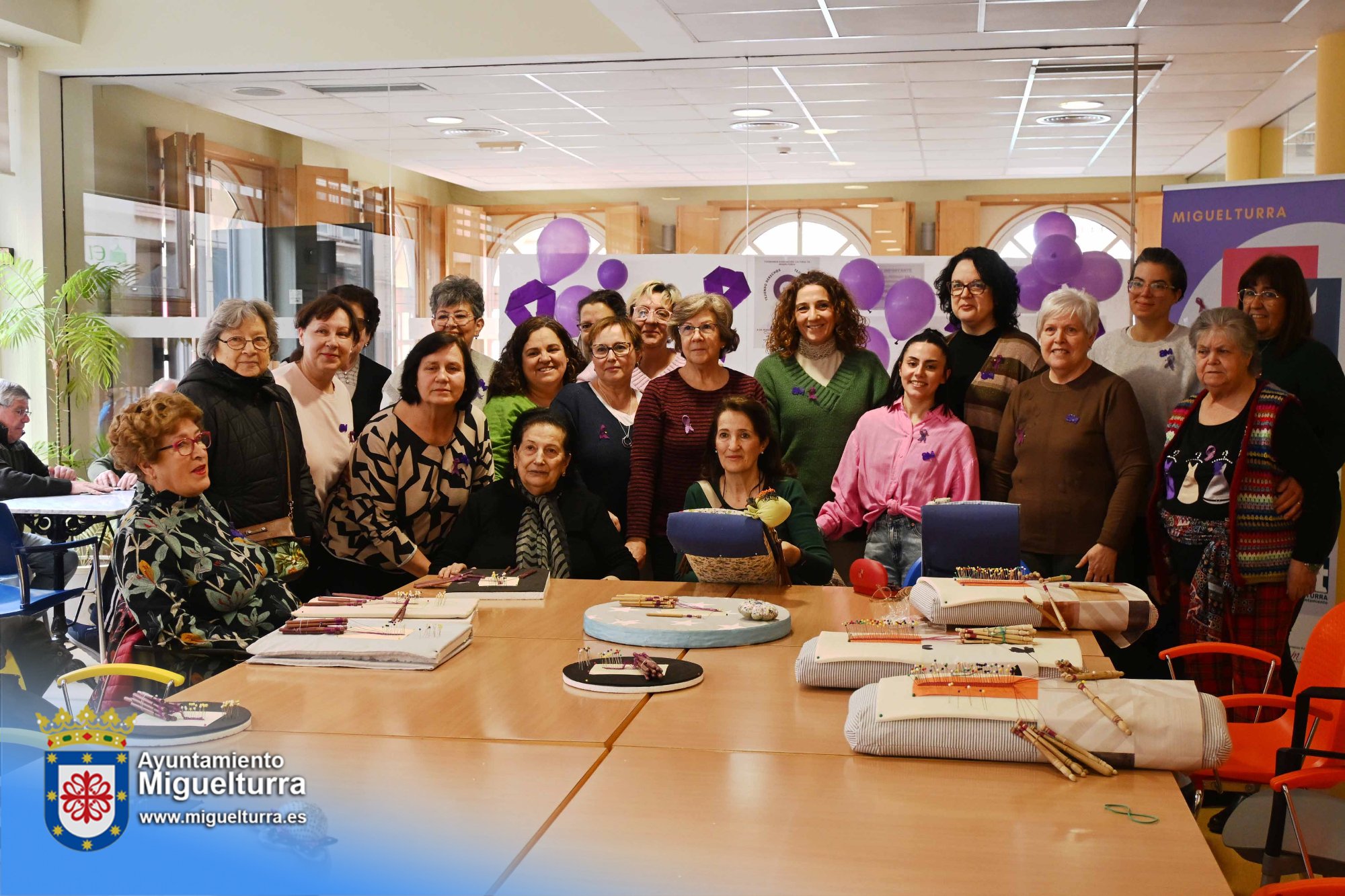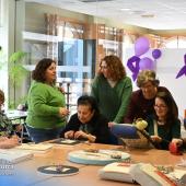 Durante la jornada se han elaborado lazos de hilo morado y rosa, símbolos de la lucha feminista, que serán repartidos mañana durante el acto institucional que tendrá lugar en el Ayuntamiento de Miguelturra.