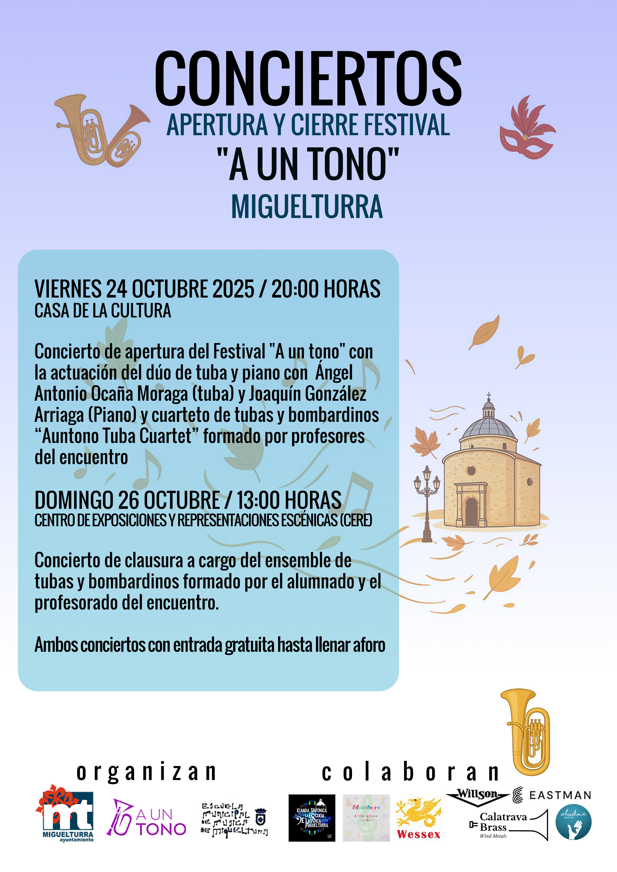 Este gran fin de semana musical está organizado por el Ayuntamiento de Miguelturra y la asociación "A un Tono", con la colaboración de la Escuela Municipal de Música y Danza y el apoyo de entidades como Musicturra, Wessex, Willson, Eastman, Calatrava Brass y Aludme Dystonía.