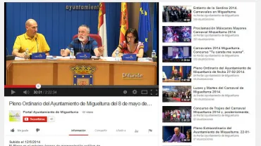Ayuntamiento Disponible en el canal Youtube del Ayuntamiento de Miguelturra el Pleno Ordinario del jueves 8 de mayo de 2014. En formato de vídeo HD. Consúltelo a través de esta noticia.