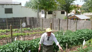 Bienestar Social Cuatro mayores de Miguelturra siembran el "huerto del abuelo" en el Parque Rivas Moreno que ya da sus frutos. Iniciativa de la Concejalía de Bienestar Social que busca el envejecimiento activo y productivo de sus mayores.