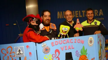 Educación Bob esponja enseña educación vial a los niños de infantil y primaria. Una iniciativa del Ayuntamiento junto a la Policía local y Protección civil.