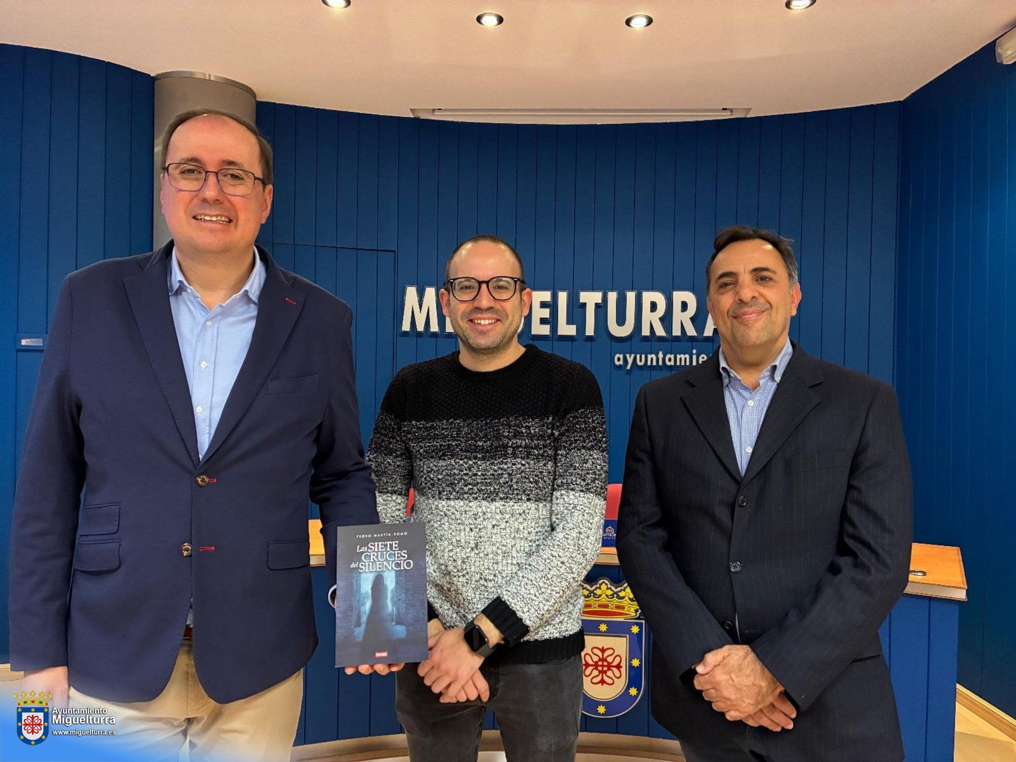 El escritor Pedro Martín-Romo ha visitado el miércoles 17 de diciembre de 2025 los estudios de Radio Miguelturra con motivo de la inminente presentación de su nueva novela, “Las siete cruces del silencio”. Previamente, el autor ha sido recibido institucionalmente en el Ayuntamiento por el alcalde de la localidad, Luis Ramón Mohíno, y por el concejal de Promoción Económica, Miguel Ángel García.