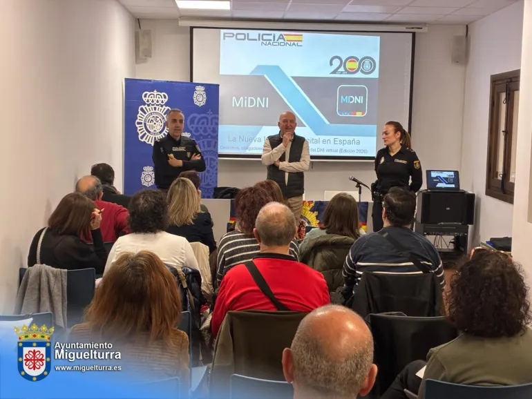 La charla, que se ha celebrado en la sala de reuniones de la Biblioteca Municipal 'Casa de la Capellanía', ha servido para conocer la aplicación "Mi DNI", la cual permite a los ciudadanos portar su documento nacional de identidad en el teléfono móvil con total validez legal, eliminando la necesidad de llevar el soporte físico de forma constante. Entre sus principales ventajas destacan la prevención de fraude; privacidad avanzada; y validez institucional, ya que a partir del 1 de abril, todas las instituciones nacionales (incluyendo hoteles, bancos y aerolíneas para vuelos internos) deberán estar adaptadas para identificar de forma segura a los ciudadanos a través de la aplicación.