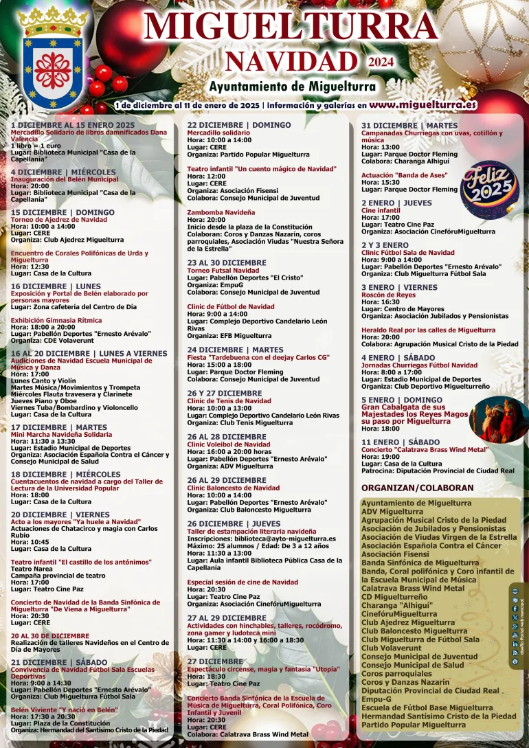 Del 23 al 30 de diciembre se celebrará el Torneo Futsal Navidad, en el Pabellón Deportes "El Cristo". Estará organizado por EmpuG con la colaboración del Consejo Municipal de Juventud. También tendrá lugar el Clinic de Fútbol de Navidad, de 9:00 a 14:00 horas, en el Complejo Deportivo Candelario León Rivas, organizado por EFB Miguelturra.