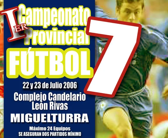 El Patronato Municipal de Deportes del Ayuntamiento de Miguelturra convoca del 22 al 23 de julio de 2006, y en el Complejo Deportivo Candelario León Rivas el Primer Campeonato Provincial de Fútbol 7, con un máximo de 24 equipos participantes en la competición, y con unos premios para los finalistas que oscilan entre 900 euros y trofeo, para el primer clasificado, 400 euros y trofeo, para el segundo y 100 euros y trofeo para el tercero.