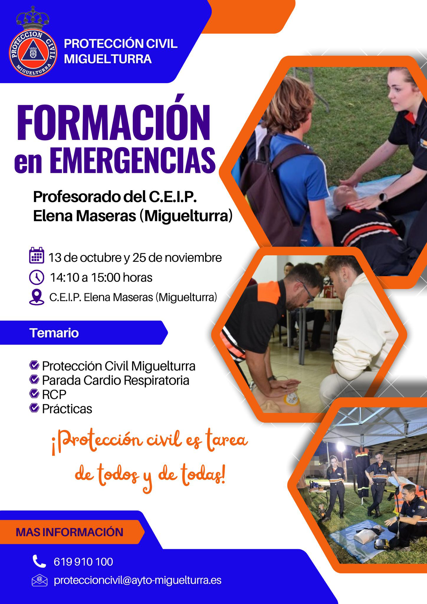 La Agrupación de Voluntarios de Protección Civil de Miguelturra, en colaboración con el Ayuntamiento, ha puesto en marcha un nuevo y crucial programa formativo en emergencias y primeros auxilios, dirigido específicamente al profesorado y personal laboral del Centro de Educación Infantil y Primaria (C.E.I.P.) Elena Maseras.
