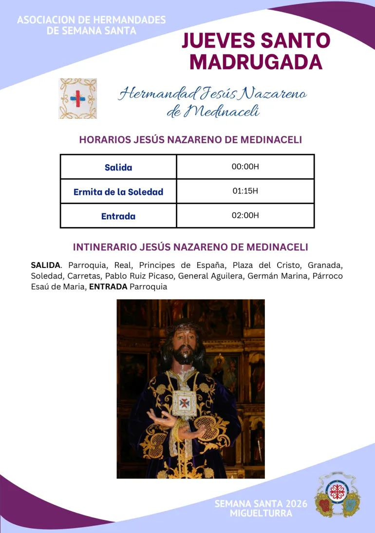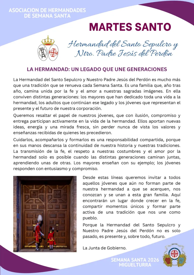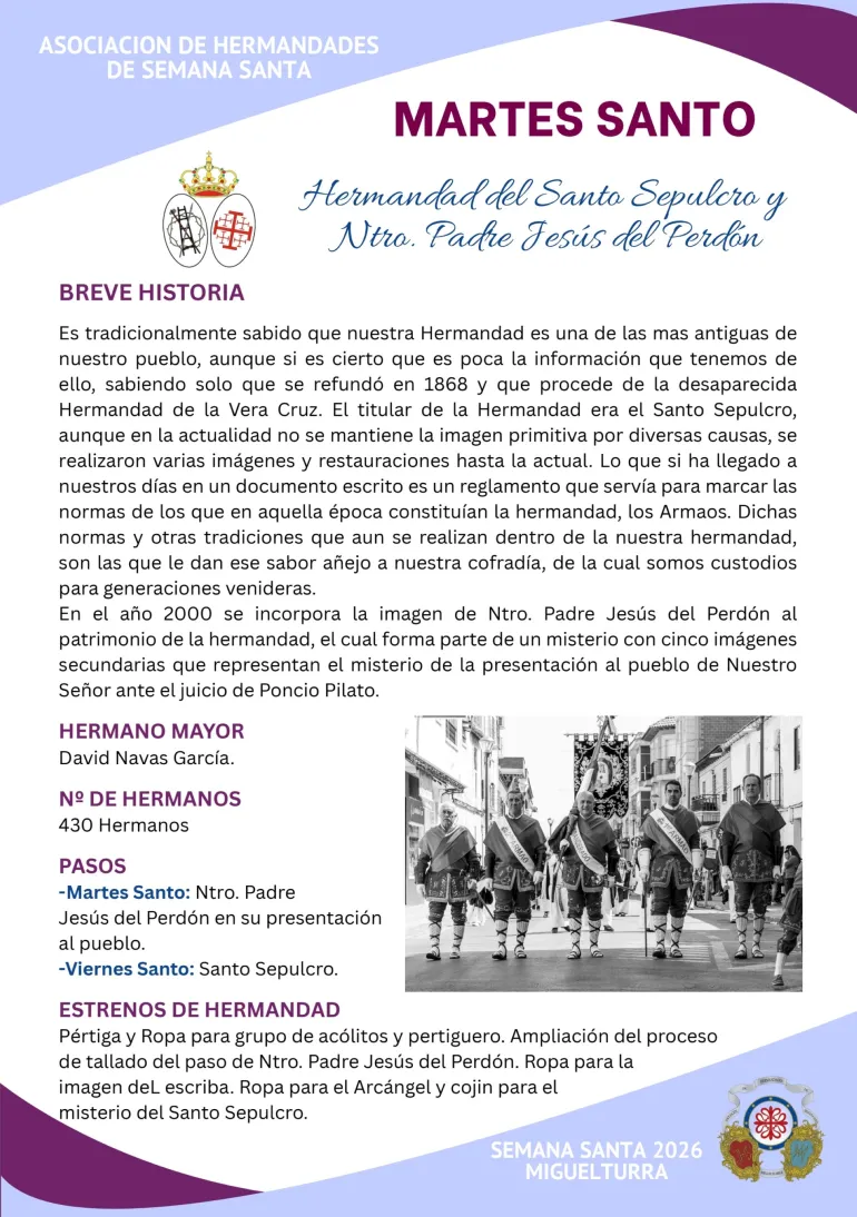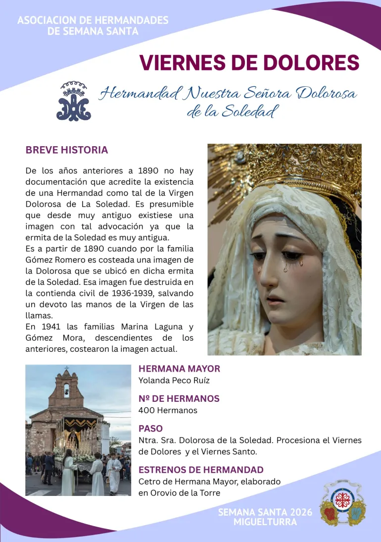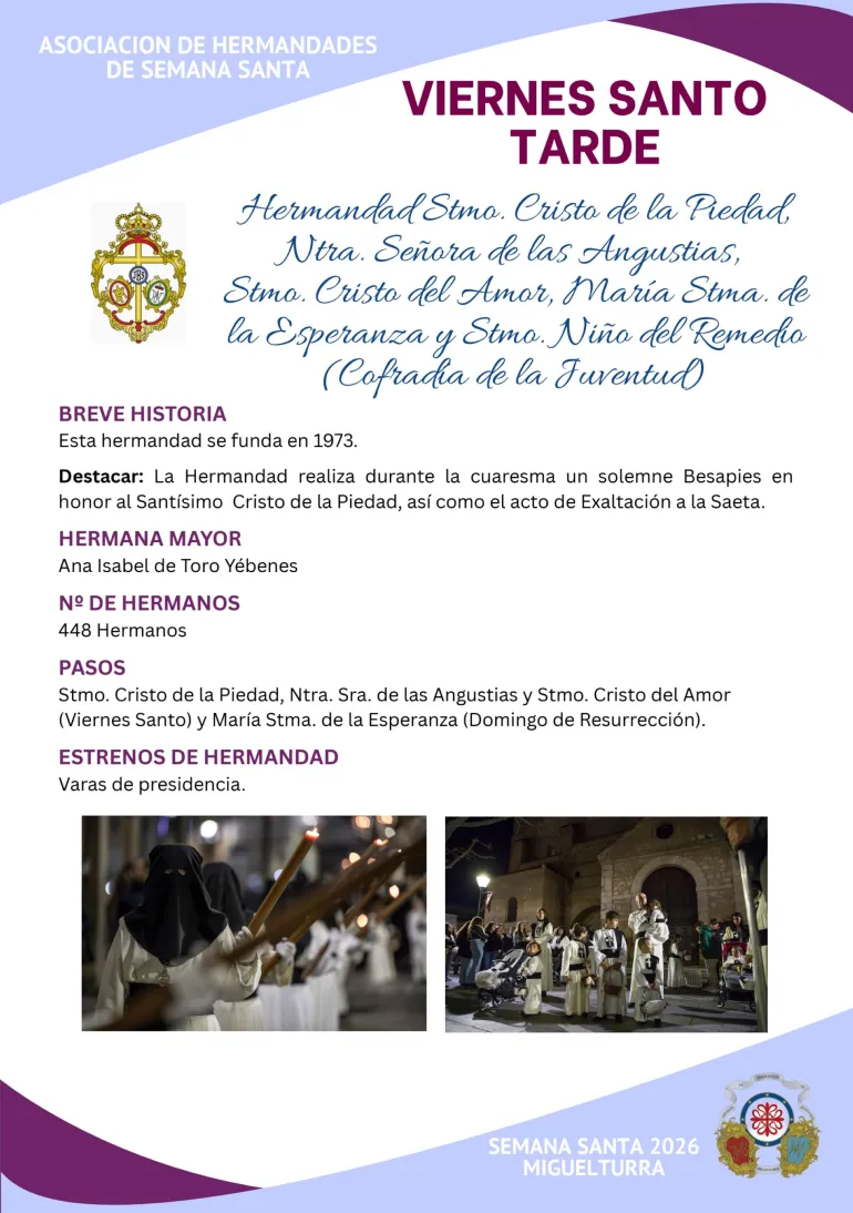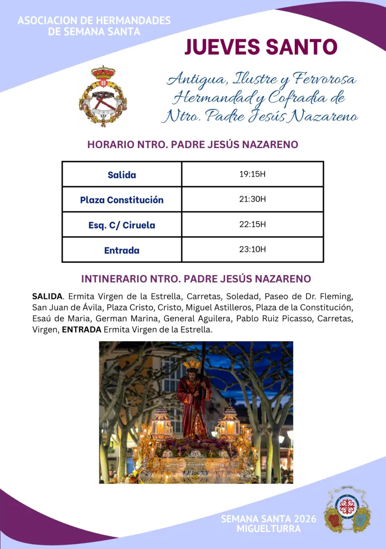 A continuación les dejamos a su disposición el programa completo correspondiente a la Semana Santa de Miguelturra 2026, tanto en imágenes como el documento en formato PDF, esperando sea de su interés, y cuyos actos principales se desarrollarán del viernes 27 de marzo al domingo 5 abril de 2026.