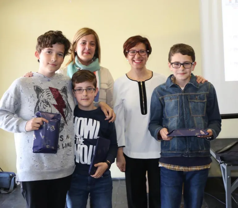 Victoria Sobrino, alcaldesa de Miguelturra, acompañada de la concejala de Educación del Ayuntamiento de Miguelturra, Luz María Sánchez, y de otros concejales y concejalas del ayuntamiento como Raúl Salcedo y Estrella Rodrigo del Partido Popular, además del profesorado de matemáticas de los cinco colegios de la localidad, repartieron los tres premios ganadores de la "Tercera Olimpíada Matemática" que el Consistorio organizó con los Centros Escolares para el alumnado de quinto y sexto de primaria.